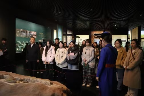 10月26日下午,内蒙古博物院迎来了一场别具一格的“行走的思政课”。ok138太阳集团古天乐中华民族共同体概论教研室主任许星杰邀请毛泽东思想和中国特色社会主义理论体系概论教研室主任杨瑞霞以及青年教师穆鹏云,共同带领学生走进文物展厅,将《中华民族共同体概论》课程从教室转移到展厅,展开了一次“与历史对话,品交融之美”的沉浸式教学活动。在红山玉龙与匈奴王冠的见证下,千年的民族交往交流交融历史成为最生动的教材。